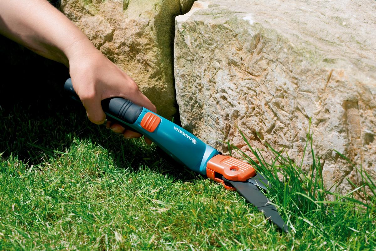 A forgatható GARDENA Comfort fűnyíróolló segít a tökéletes nyírási eredmények elérésében a gyepszéleknél és a kert nehezen hozzáférhető helyein. A fűnyíróolló részleteinek kényelmére nagy figyelmet fordítottak. Ez a lágy elemekkel ellátott fogófelülettel kezdődik, ami azt jelenti, hogy az olló nem csak kényelmesen fekszik a kézben, hanem könnyen kezelhető is. Ezenkívül az egykezes zárral használat után kényelmesen, egy kézzel is lezárhatod. A tapadásgátló bevonattal ellátott, hullámosan élezett kések biztosítják, hogy a lehető legkevesebb nyesedék tapadjon a szerszámhoz, és a vágások pontosak legyenek.