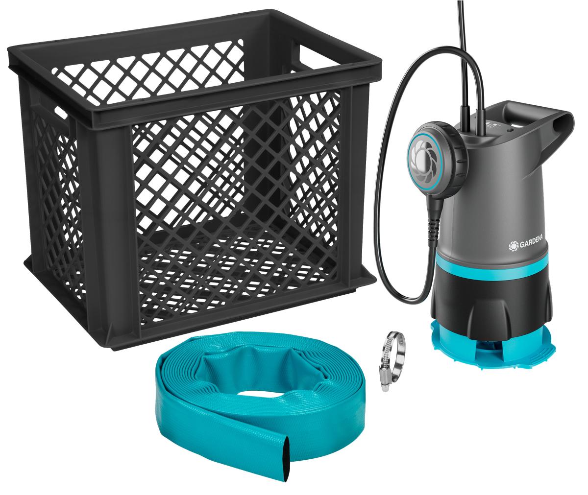 GARDENA BASIC Áradás védelmi szivattyú készlet 20000 az árvízvíz gyors elvezetésére. Akár 9 m magasra is képes tiszta vagy szennyvizet szivattyúzni, így bel- és kültér tisztítására is használható.