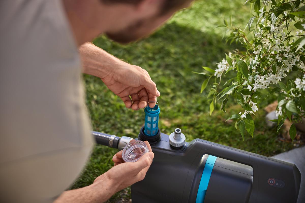 A rozsdamentes acélból készült be- és kimenetek, a fagyálló leeresztő csavar és a beépített szűrő együtt biztosítják a megbízható működést. A szivattyút a GARDENA szigorú szabványainak megfelelően tervezték és gyártották.