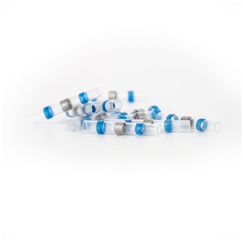 Az első réteg a kék színű hőre zsugorodó csatlakozó, aminek a belsejében cin szolgáltatja a biztos kötést és a kiváló vezetési képességet.