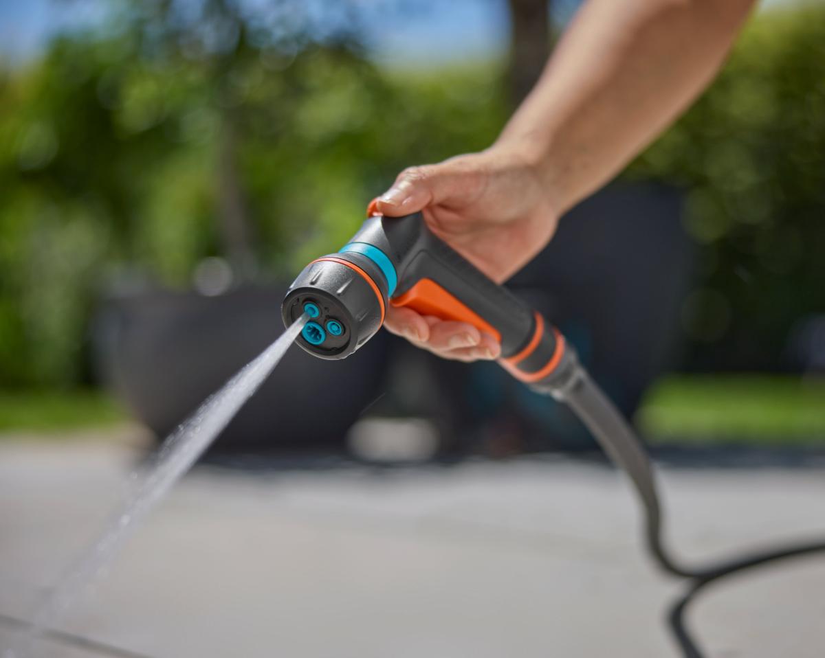 A GARDENA gondosan megtervezett Classic Compact Többfunkciós öntözőfeje UV-sugárzás és alkalmi fagy ellen védett a kertészeti szezonban, és három sokoldalú vízsugárformából lehet választani.